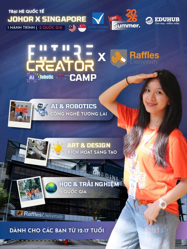 Hiểu rõ điều đó, FUTURE CREATOR CAMP 2026 do EDUHUB hợp tác cùng Đại học Raffles (Malaysia) tổ chức như một hành trình học tập – trải nghiệm – trưởng thành toàn diện dành cho học sinh Việt Nam từ 12–17 tuổi.